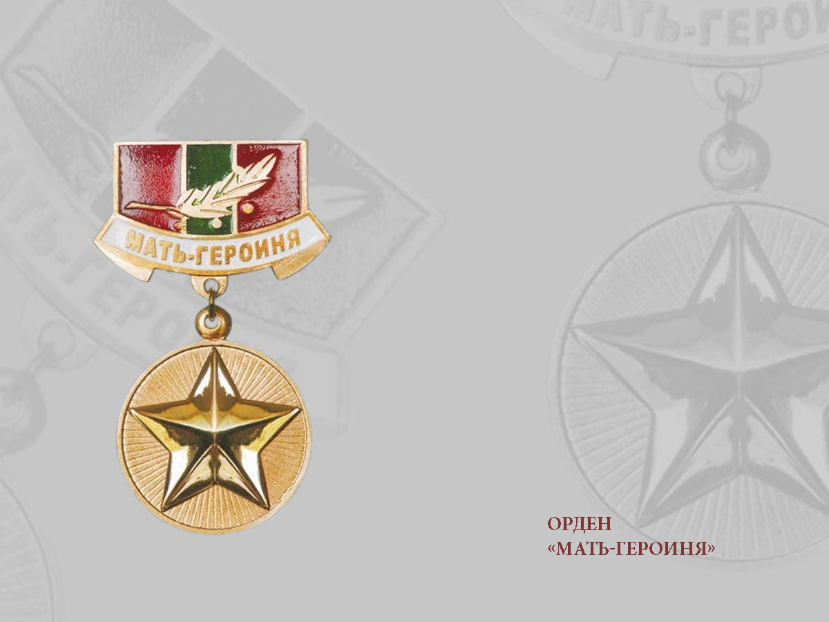 Орден «Мать-героиня» присваивается матерям, родившим и воспитавшим десять и более детей.