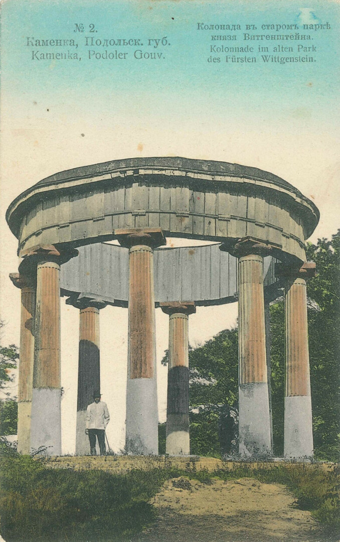 Данный мемориал, уже всего лишь как «Колонада в старом парке Князя Витгенштейна», был представлен на цветном фотоизображении почтовой открытки начала ХХ века (452) (Илл.6) [30], а также на аналогичной, но чёрно-белой, открытке того же периода времени (Илл.7)[31].
