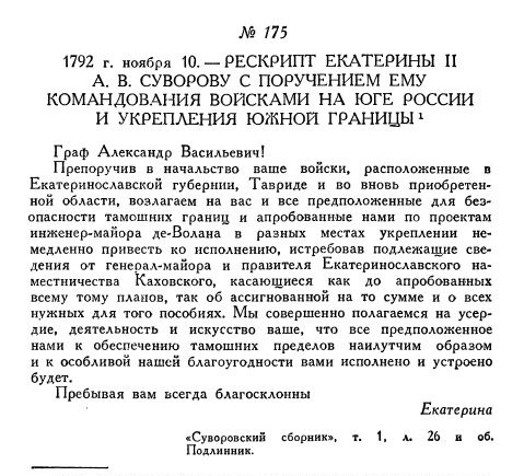 В наших краях «Меч России», как однажды назвал Суворова будущий король Франции Людовик XVIII, оказался неслучайно. К этому времени его популярность была на пике, а сама личность генерала производила глубокий психологический эффект, причем не только на солдат России, но и на её врагов. Последнее обстоятельство стало решающим фактором назначения Суворова командующим войсками Екатеринославского и Таврического наместничеств. Императрица Екатерина II прекрасно разбиралась в политике и понимала, что прибытие «грозы турок» на новый западный рубеж империи, каким после Ясского мира 1791 года стал Днестр, будет наполнено глубоким символическим смыслом. Мол, сам Суворов пожаловал на пограничье, попробуйте на земли вновь приобретенные напасть, коль забыли дела его под Рымником и Измаилом!