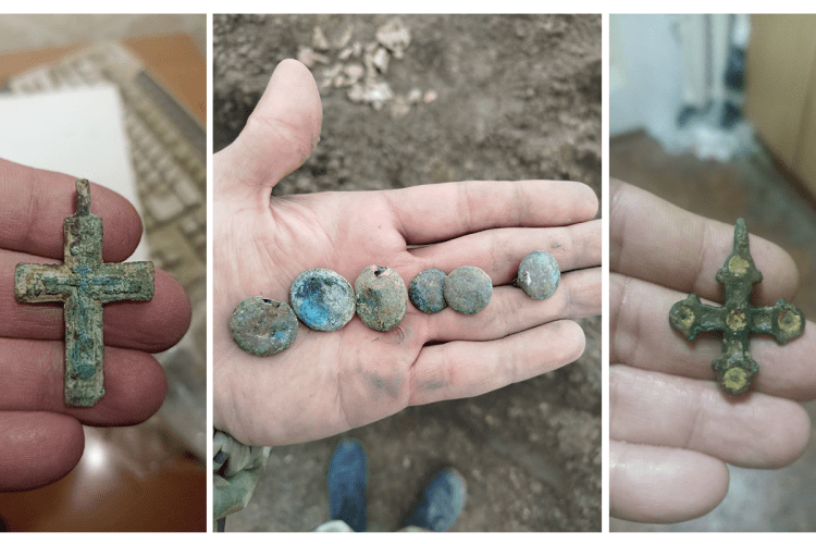 Среди изученных артефактов медные нательные крестики образца XVIII столетия и засевшие в костях погребённых свинцовые сферические пули, характерные для XVIII – начала XIX веков. Кроме того, найдена керамическая курительная трубка, характерная для XVII-XVIII веков.