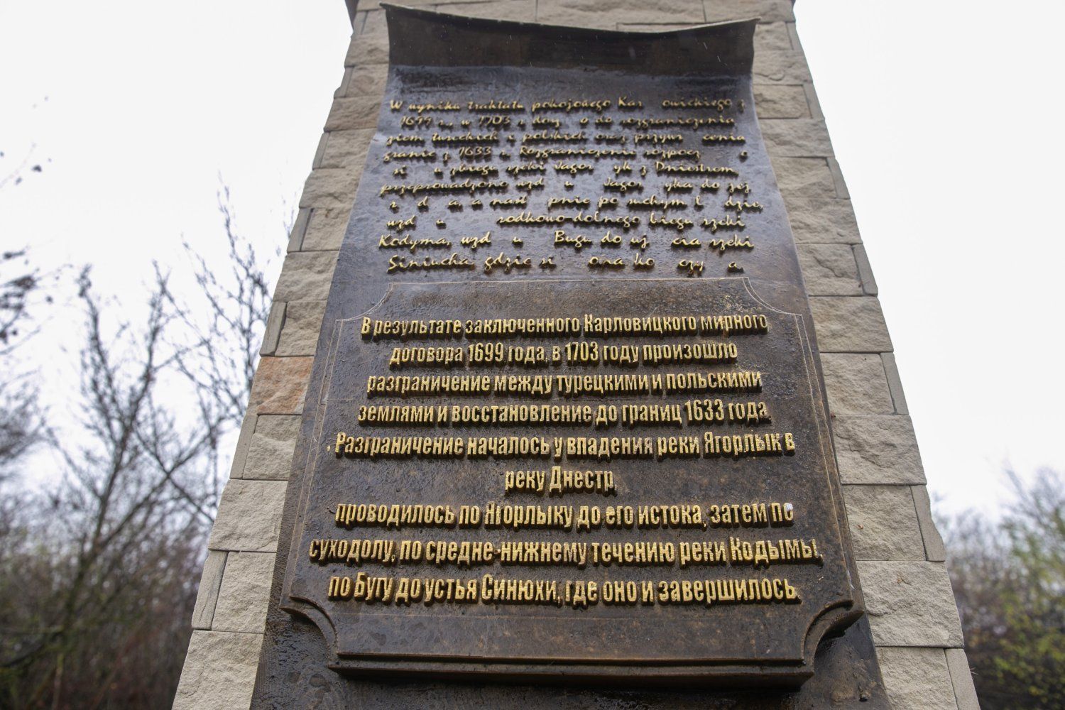 Стилизованные пограничные столбы, выполненные, как и в прежние времена, из местных материалов, символизируют разные эпохи и государства. На каждом – соответствующий герб и информационные таблички на русском, польском, турецком и английском языках.